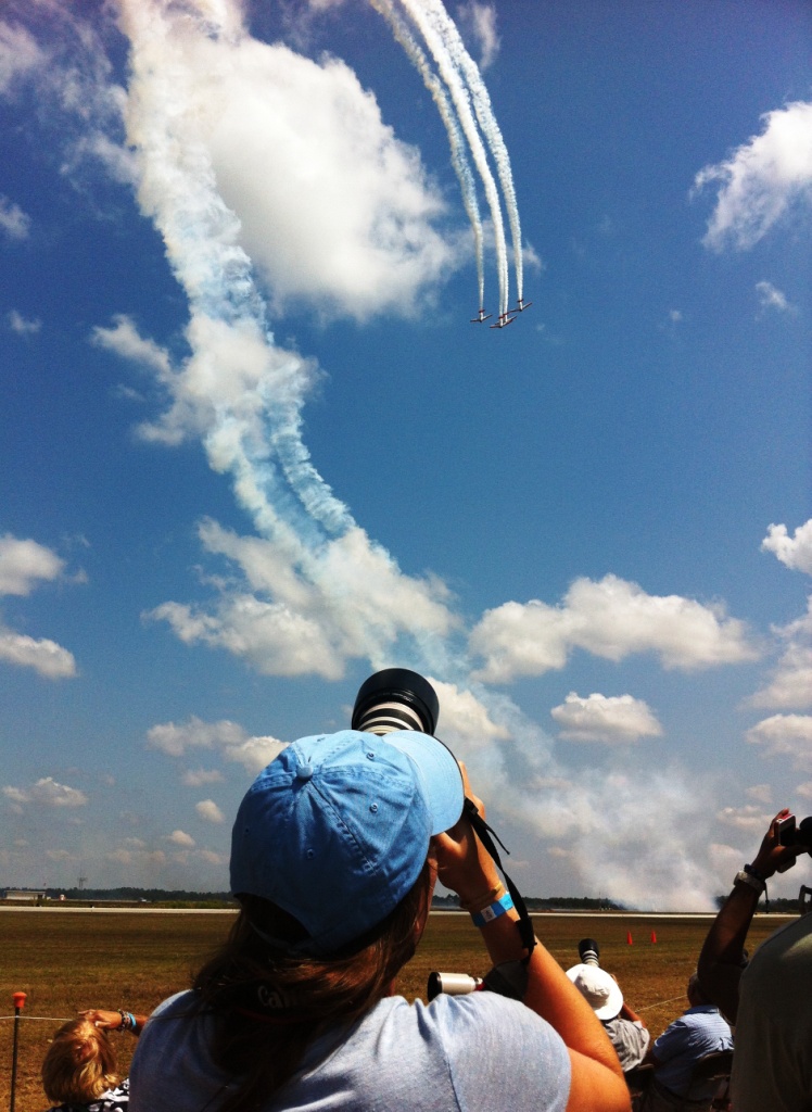 Air show planners must have had foresight because the only military jet scheduled to perform this year was an F-22 and was cancelled because of the sequester. Other than that, the show went on with amazing aerobatics, including that of AeroShell Aerobatics Team in their North American AT-6 Texans and wing walker Jane Wicker, as I blogged about prior to the show. Do you see her in the photo at the top of this post? Amazing and believe me, I was sitting on the edge of my chair, holding my breath watching her.