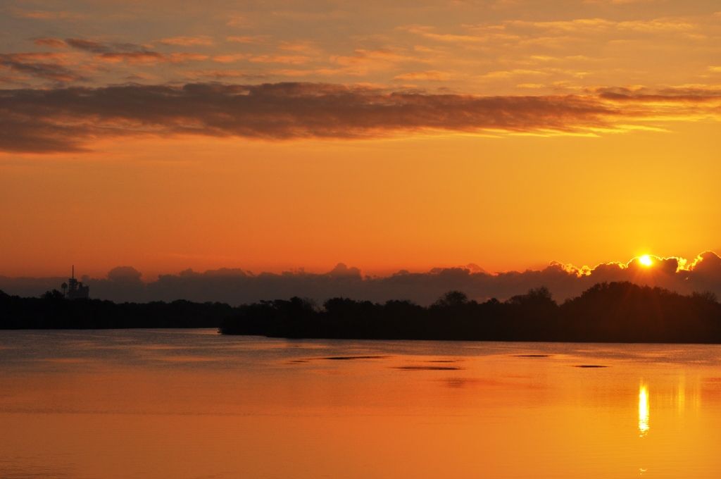 7 a.m.-ish An incredible, golden sunrise graced us indicating all would be a go. I joined the line of photographers by the lagoon to capture the moment. A dolphin surfaced every so often during its breakfast. That golden sunrise will forever stay with me.