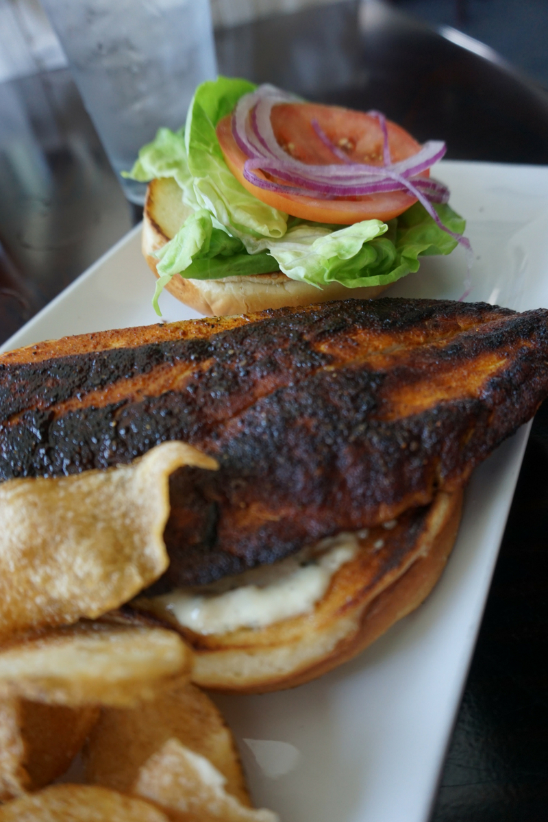 The restaurant is located in the new beachfront SpringHill Suites and the restaurant looks over the hotel’s lazy river. and the gorgeous white-sand beach of Navarre Beach. My lunch entrée of choice is the blackened grouper sandwich.