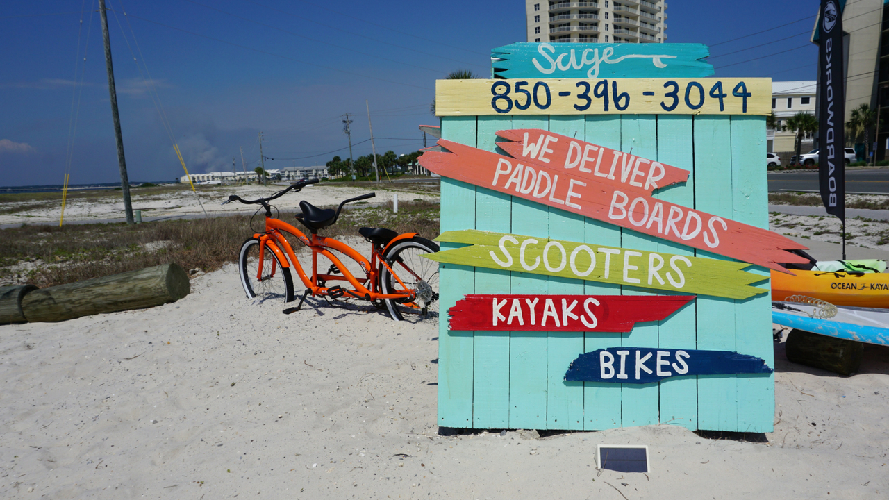 Rent paddleboards, kayaks, beach cruiser bicycles, and scooters.