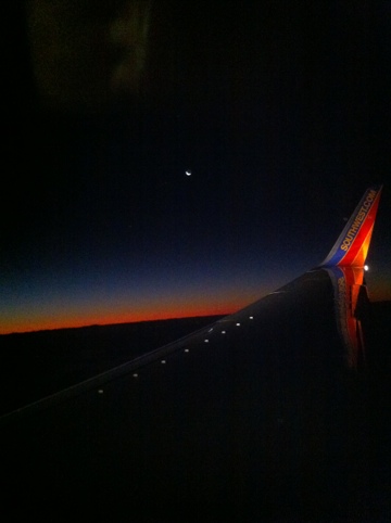 Yeah, I know. I didn’t get a Wordless Wednesday post uploaded yesterday. Only the second time since I’ve launched this blog. Enjoy this shot somewhere over South Florida between Fort Myers and Orlando. You can see the moon, Mercury and the ribbon of red is the sunrise.