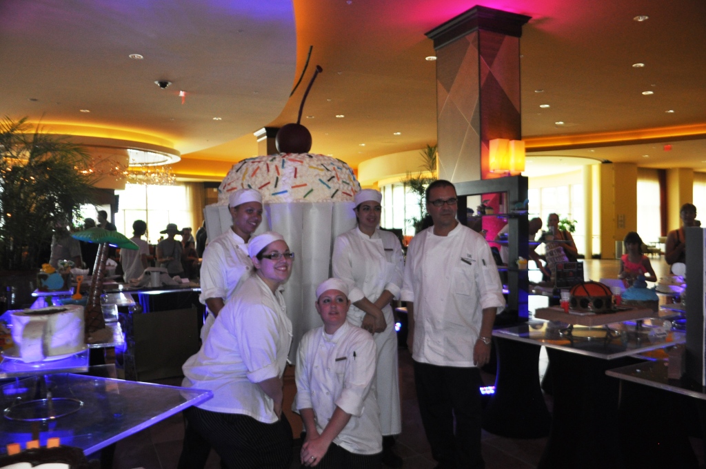 During lunch at the casual Harvest Bistro, which overlooks the pool area, I was good and selected a delicious and crisp Garden Chop Salad with Grilled Chicken Breast. Believe me, it was difficult passing on entrees as Citrus Crusted Salmon, Chicken BLT Wrap and Turkey Reuben, along with appetizers of Mac & Five Cheeses and a variety of Pizzas, but knowing I would be indulging in sweet cupcakes later meant I needed to keep my girlish figure in mind. [Insert sarcasm]