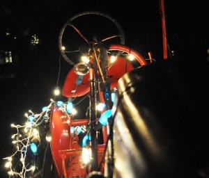Ho! Ho! Ho! Arrived in Buffalo yesterday and it’s a little green around here (although as I write this, snow flurries are drifting down from above). Here are a few snapshots of my dad’s red tractor decorated with holiday cheer for the season.