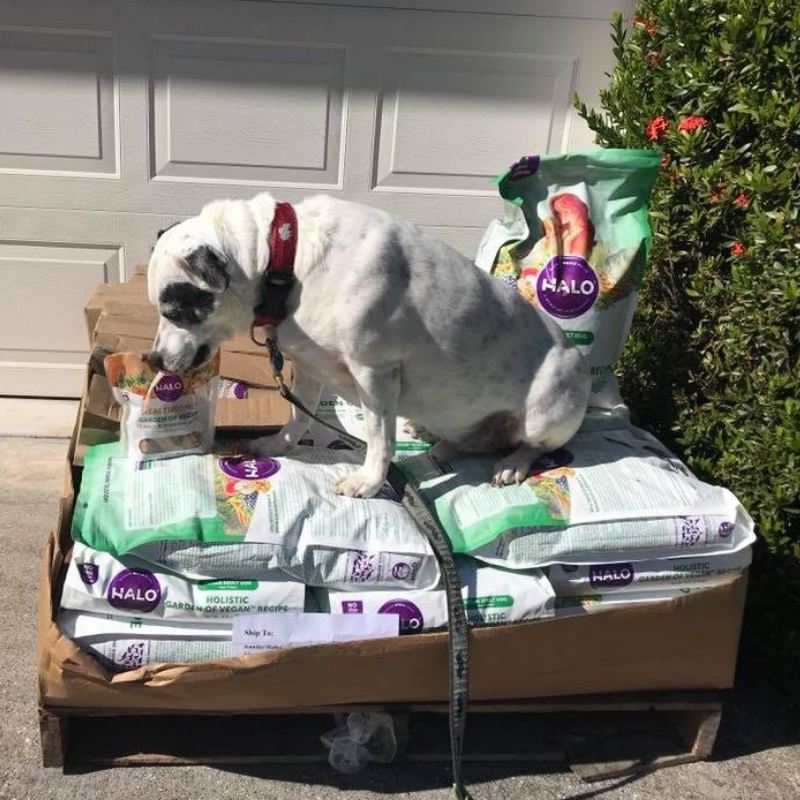 In the Fall, I participated in Halo’s #HaloVegPledge by vowing Radcliff would go meatless at least on Mondays. In December, Halo notified me we had won! However, I did not ask what I won, there were three prize levels. When they reached out again and asked if I would be able to receive a pallet of dog food, I realized we had won the grand prize!
