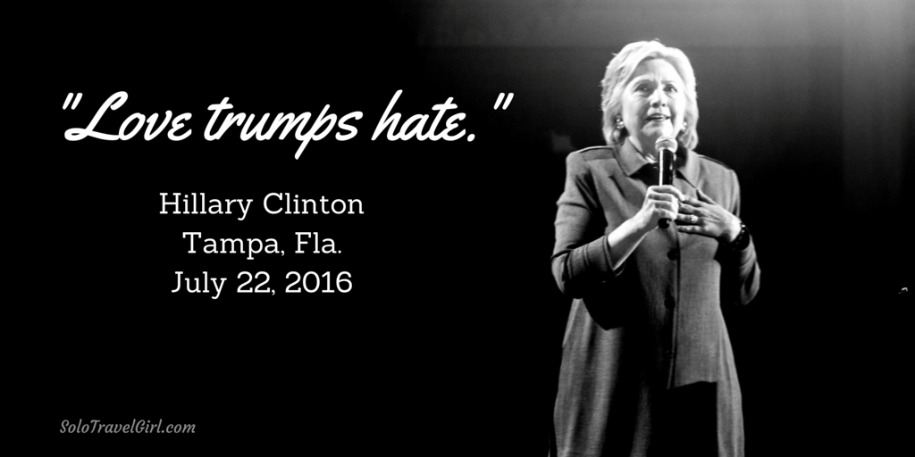 “Love trumps hate.” Hillary Clinton in Tampa, Fla., July 22, 2016