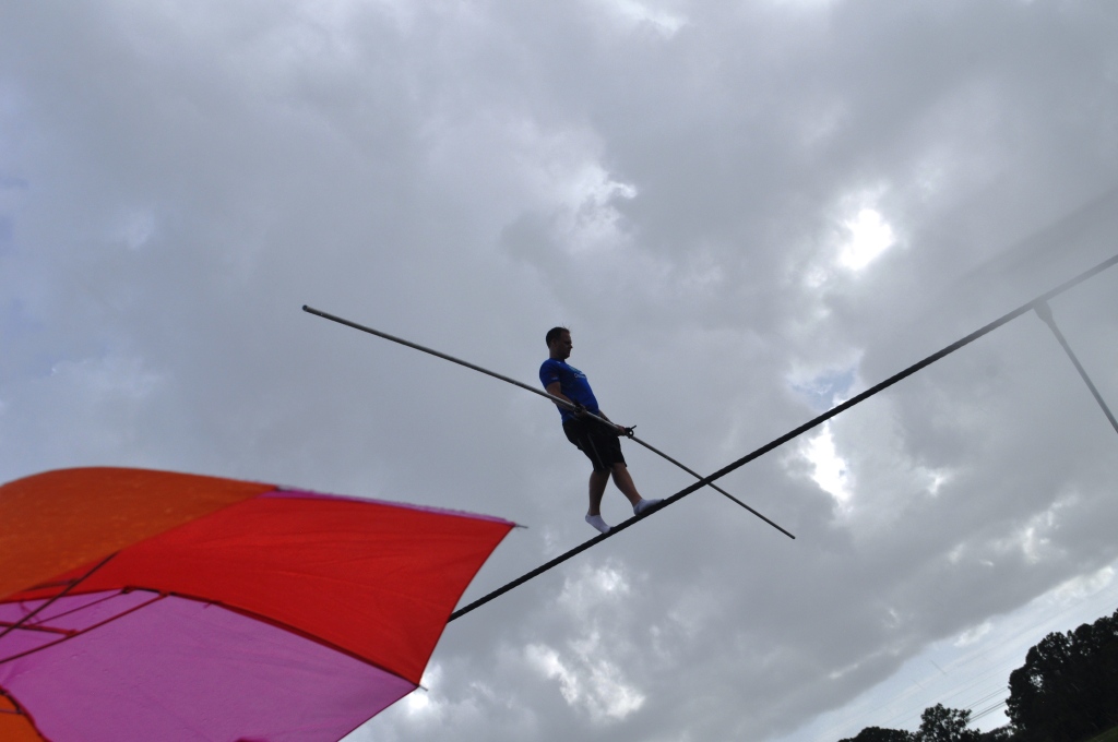 Are you stalking Nik Wallenda? A friend jokingly asked Sunday evening after I uploaded photos from his training. So yeah, counting today, I’ve seen the “King of the Wire” train four times at Sarasota, Florida’s Nathan Benderson Park prior to his Sunday walk across the Grand Canyon.