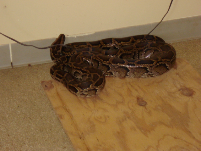 In 2007, some employees of the park management company in Flamingo (and I know who you are in case you’re reading this!) found a 10-foot Burmese python along the road one night and decided to keep it as a pet in their dorm room. My former husband (and general manager of Flamingo Lodge until he passed away in 2008) told me story of how the snake was kept in a false bottom of a dresser and how he told National Park Service law enforcement if they needed to shoot it, to not shoot a hole in the dorm. NPS law enforcement scolded the employees and told them how dangerous it was to keep the reptile. They said it could have easily strangled them while they slept.