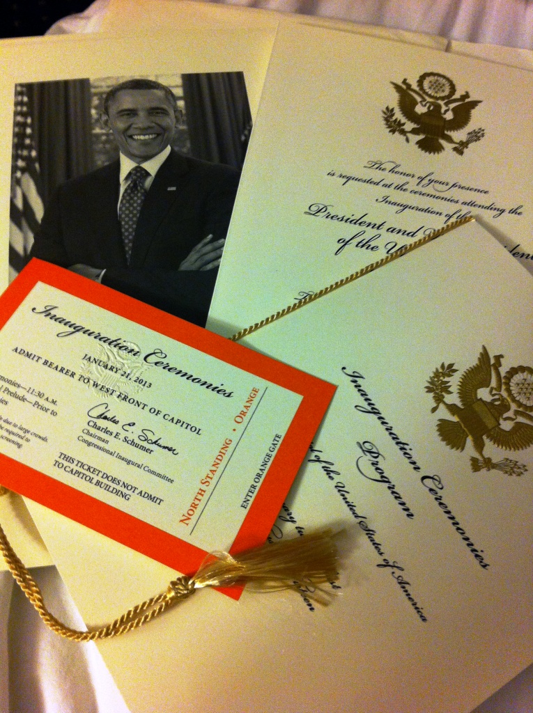 As you can see from the top photo, I had a pretty good view of President Barack Obama’s and Vice President Joe Biden’s swearing in for a second term. (Although, I couldn’t see whether Beyonce’s mouth was in sync with the music.) My ticket, which I received from another friend, was for the Orange Section but for a medley of reasons, we ended up in the overflow ticketed area.