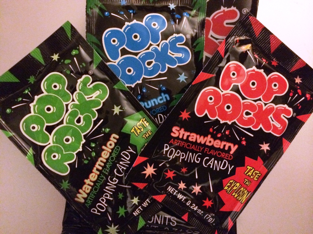 4 packets Pop Rocks – any flavor (.24oz packets; I found them at Dollar Tree – and have seen them at Walmart in the checkout aisle. They’re a better value at Dollar Tree)