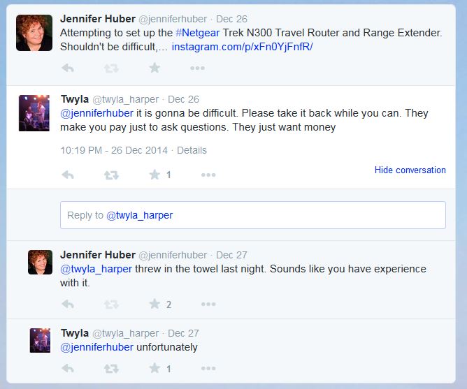 After an hour or so of trying to get the NETGEAR Trek N300 Travel Router and Range Extender connected, I gave up.