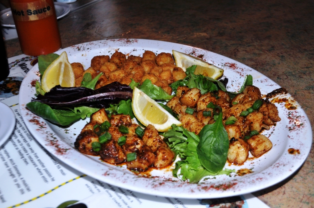 And what happened to the two gallons of scallops? Well, once cleaned from their shells, there was about half a quart. Several restaurants will prepare the cleaned catch, including the hotel I stayed, the Plantation on Crystal River. We headed to Neon Leon’s Zydeco Steakhouse, a tribute restaurant to the band Lynyrd Skynyrd which is co-owned by Leon Wilkeson’s (bass guitarist for Lynyrd Skynard) nephew, Mitch.