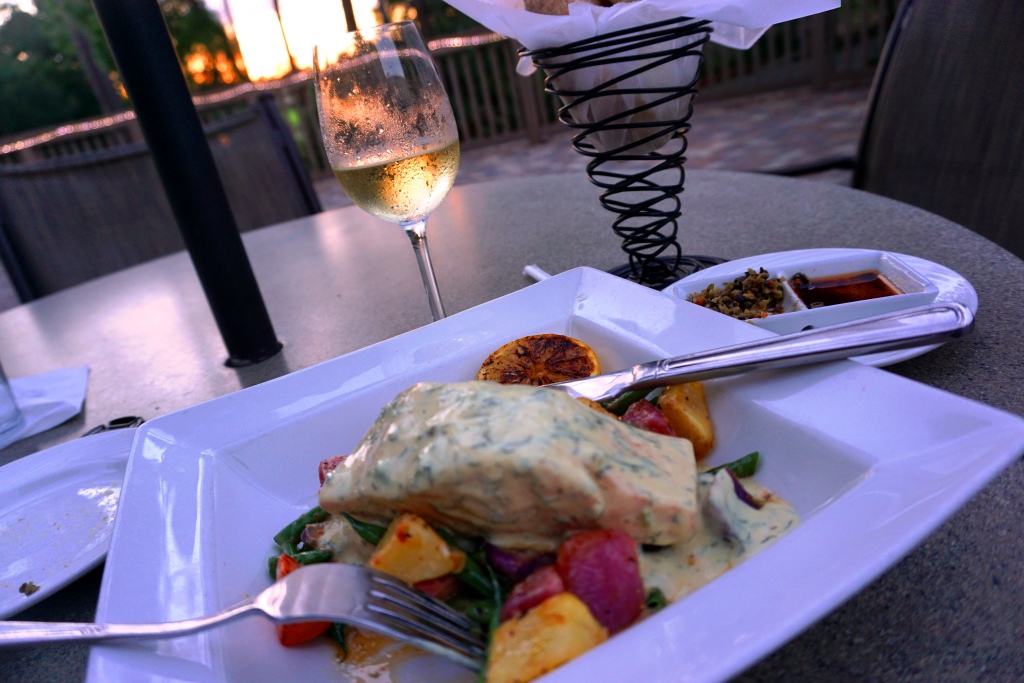 Prior to resting my tired body in a comfortable and spacious one-bedroom suite (who knew learning how to golf and being pampered in a spa would be so tiring?), I enjoyed dinner of a delicious, buttery poached salmon fillet served on a bed of green bean potato salad and topped with a divine Dijon dill yogurt sauce and grilled lemon at the Market Salamander Grill. I toasted the sunset with a sweet Riesling but before I finished my meal, I made a faux pas.