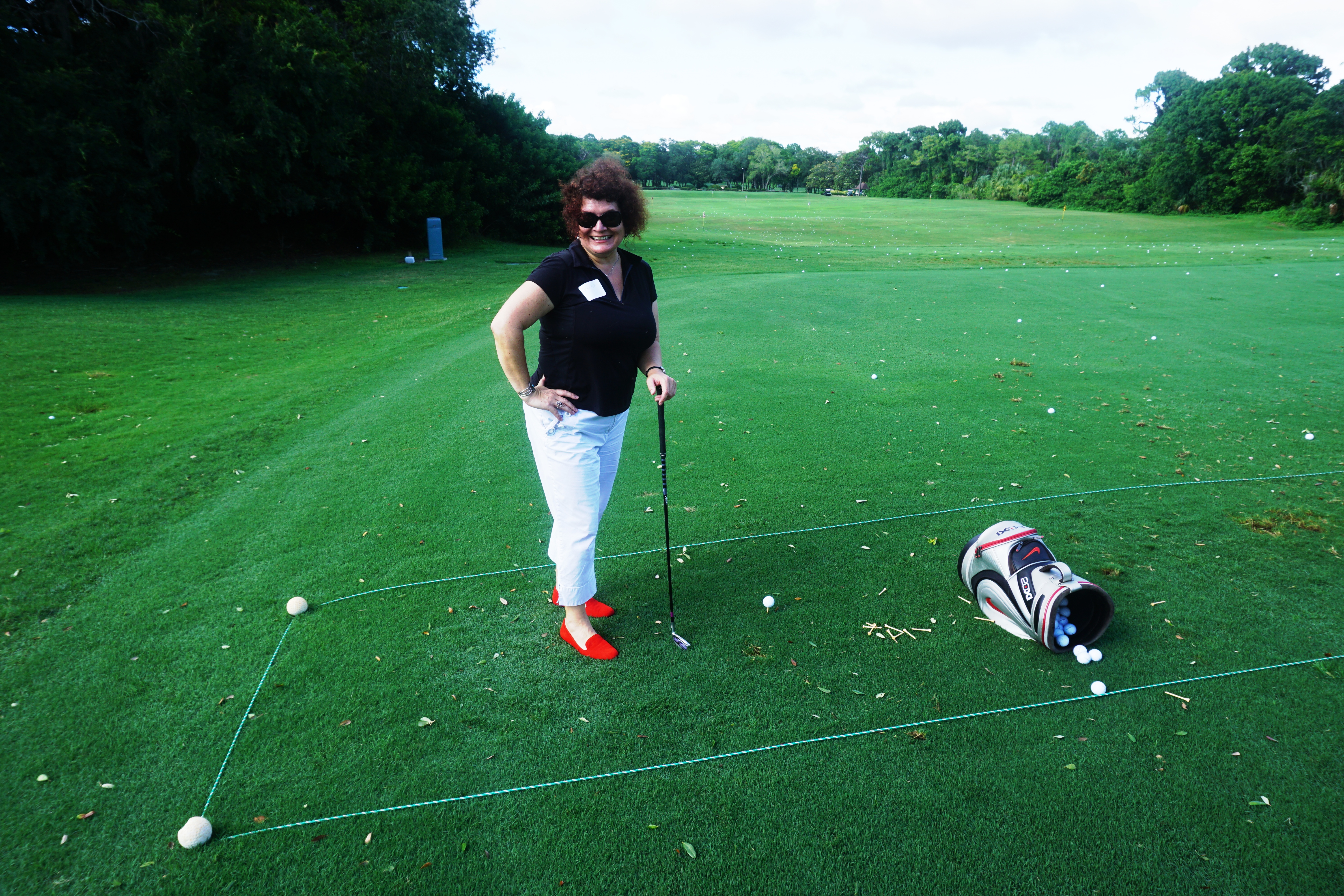 A golf course on the PGA Tour? Yikes! Even though I don’t follow golf, I know the PGA is a kinda a big deal. They are a serious golf course that has regular maintenance and Ace Golf Course Netting for safety. This is a big time course! And this, to me, screams fashion emergency because there is a golf attire etiquette one is expected to follow and I’m a bit fashion-challenged. Luckily, this was a clinic and not a full game so there was some leeway in attire. I wore white capris, a black short-sleeved cooling top by Columbia Sportswear, and red leather flats by RHEA Footwear (one of the most comfortable pair of shoes I have ever worn and now, my go-to travel shoe!)