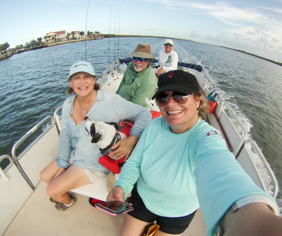 When I learned Capt. Rachael, of R&R Charters, offered dog-friendly fishing trips, I knew this was something I needed to try so I purchased a gift certificate to fish with her through the Ladies, Let’s Go Fishing! auction and planned a trip to Daytona Beach. To the best of my knowledge, my rescue dog Radcliff has never fished before, although he has been on a boat one other time, and I thought it would be a fun, different experience. And if he liked it, maybe I’d find other dog-friendly fishing charters. My friends had a great time fishing with Alaska Streamers on their holiday, and after hearing all about it I was itching to get out again – but wanted to bring the pooch along to share in this awesome experience!