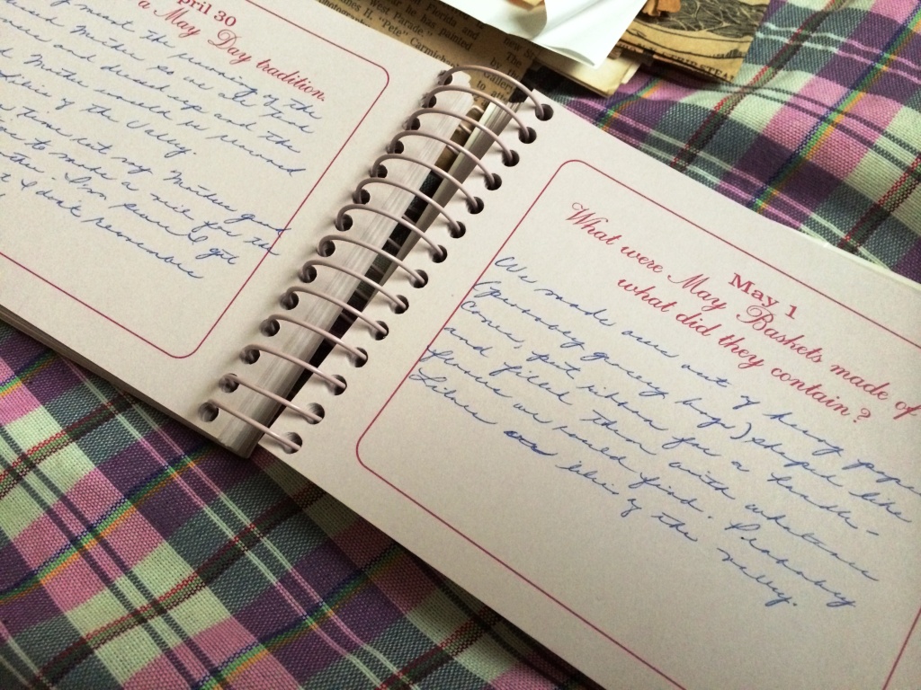 It took her at least a couple of years to complete the journal and upon completion, I didn’t read it with the intention of reading it after she passed away. She left this Earth in Feb. 2009 and although I’ve read bits I haven’t read all of her entries. For some questions she wrote a brief paragraph. For other entries she didn’t write anything. I’m regretting not having read her responses when she was alive because I have questions for some of her responses.