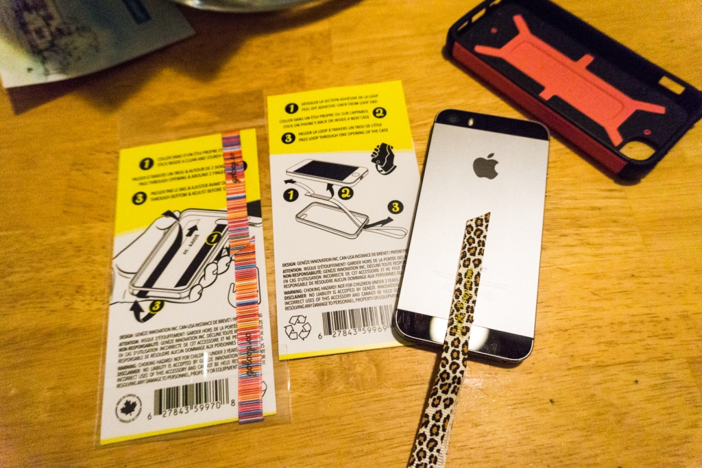 I’ve tried the Ninja Loop Phone Strap too, in a colorful Summer color, which is blend of pinks, blues, yellows and purples, and also think it’s pretty nifty and useful. The Loops are affixed to the phones with an adhesive and seem to be pretty sturdy.