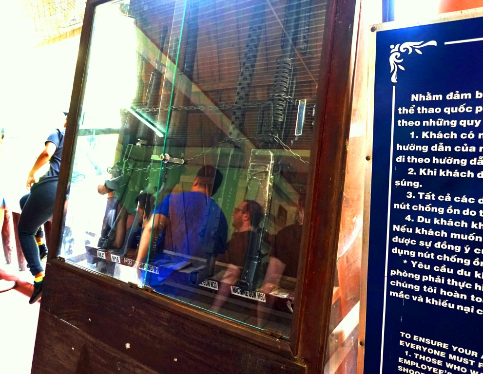 I winced with each shot as I walked closer to the range and really thought this was all too weird. I mean, the Cu Chi tunnels were where the Viet Cong were based in 1968 during the Tet Offensive. Today, it’s a war memorial park and tourist attraction and I was there, about ready to fire an American rifle in Vietnam.