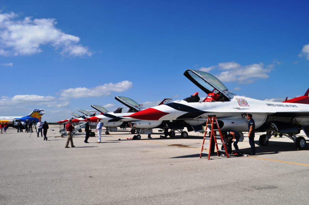 Six F-16C Fighting Falcons belonging to the United States Air Force Thunderbirds roared into Punta Gorda, Fla., skies Tuesday afternoon putting on a mini show before landing on the airport’s tarmac. “America’s Ambassador’’ in Blue” are in town for the 34th Annual Florida International Air Show taking place March 29 & 30, 2014, at the Punta Gorda Airport.
