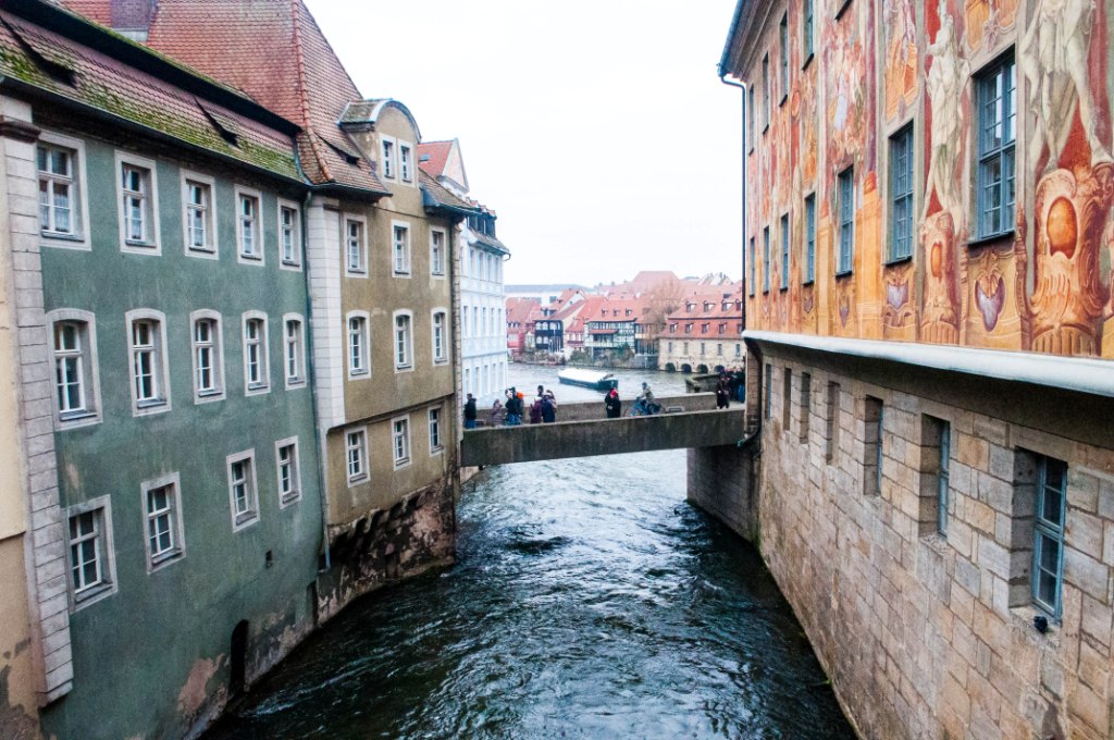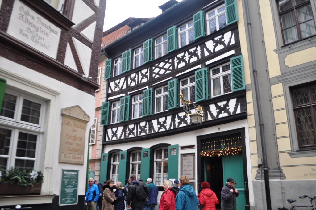 This cultural excursion was an optional tour following the walking tour of Bamberg, in which I fell in love! The city has lovely examples of medieval structures along with baroque and Romanesque architecture. It’s one of the few German cities not destroyed by WWII and was named a UNESCO World Heritage Site in 1993. The guided walking tour with local guide Ben, who’s studying to become an English teacher, included visits to Bamberg Cathedral (consecrated in 1012), the City Hall built on rivers, and of course, the Christmas market.