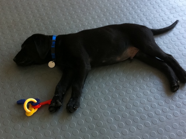 Shhh. Don’t tell my cats but I’m really a dog person at heart. Stopped in Sarasota this afternoon on my way to Florida’s Space Coast for the NASA Tweetup and a friend introduced me to Southeastern Guide Dog, Inc. They offer puppy hugging on Saturdays but I was in luck today. This sweet little guy, an 11-month-old black lab was in the house and ready for loving. Say hello to JP. Can you think of anything sweeter than a sleeping puppy?
