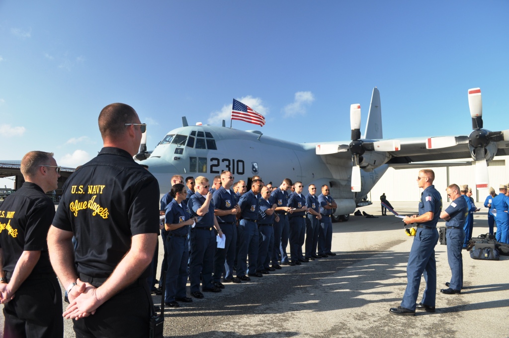 The Blues Have Landed! Punta Gorda Airport, Fla., March 22, 2012Blues Crew Gets Debriefed About their On-Ground Assignments, Something Like "Turn Right, then Left, then Right, then Left..." Punta Gorda Airport, Fla., March 22, 2012Up Close with Blue Angels Jet #7, Punta Gorda Airport, March 22, 2012No Skycap Here!Blues' F/A-18 Hornet's Get in Position (Yeah, I don't know the official military term for this), Punta Gorda Airport, Fla., March 22, 2012Capt. Benjamin Blanton U.S. Marine Corp. He Pilots the Lockheed Martin C-130 Hercules Cargo Plane Known as Fat Albert Airlines.