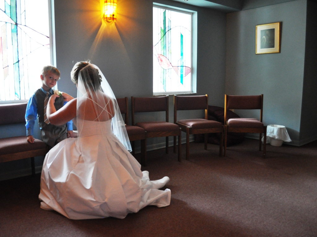 Bride Carrie Adjusts Her Son's Boutonnière, Longboat Key, Fla., June 24, 2011