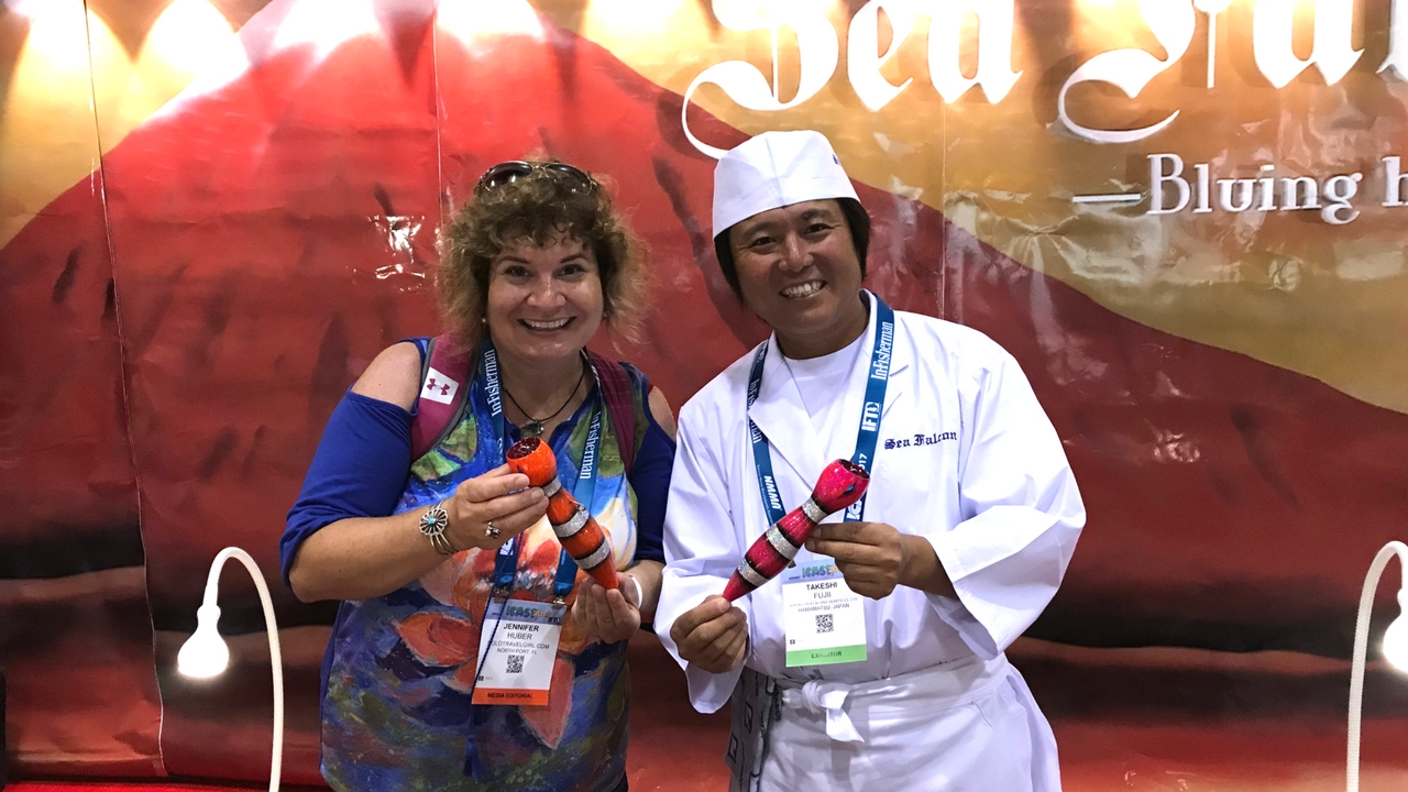 Speaking of improving fishing lures and tackle, one of the most creative booths I saw was from Bluing Hearts Sea Falcon lures and jigs handmade in Hamamatsu, Japan. The booth was set up like a sushi conveyor belt with tackle set in various dishes moving along the belt. There was also a collection of anime lures along with, um, adult lures which I imagine are novelty vs. something productive to fish with. What made this ICAST exhibitor extra special for me is I spent week in Hamamatsu in 2004 during Rotary’s Group Study Exchange program.