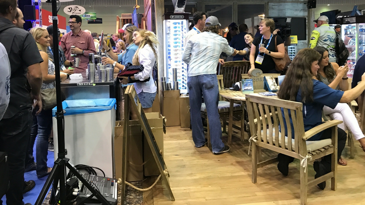 As for networking, there’s plenty of that. Social hour – complete with fermented grape juice, barley water and other spirits – starts later in the day on the show floor when brands encourage buyers and media (along with other exhibitors) to stop by their booth with complimentary beverages. Some bring along entertainment and personalities, many from the country music, NASCAR and pro-fishing world. After hours, many brands host parties and apparently the one invite to score is the one to the Costa party. I left the night of the party so I missed it but I did attend CastAway Rod’s reception and learned more about the company’s philosophy, history and rods and caught up many of my peers. Country singer Mark Chestnutt and took time to meet with everyone and sign CDs.