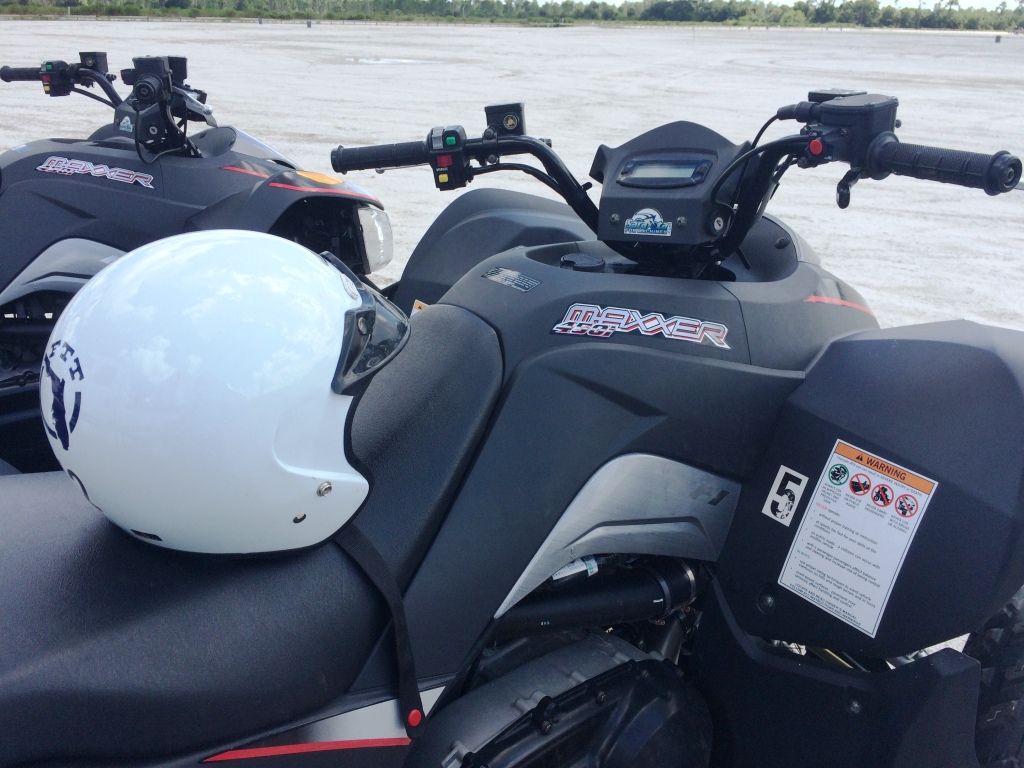 Today, my day job had me out touring the facilities and afterward, decided I needed to get out on a trail and test it out myself. Yes, I was a bit scared because I’ve never driven an ATV (I’ve driven snowmobiles) and was concerned I’d crash it, like I’ve done with Segways. But hey, these are meant for beginners so I sucked up my fear and anxiety, got a crash course in how to operate the KYMCO Maxxer 450i (in other words, all-terrain vehicle to you and me) then went on my way.
