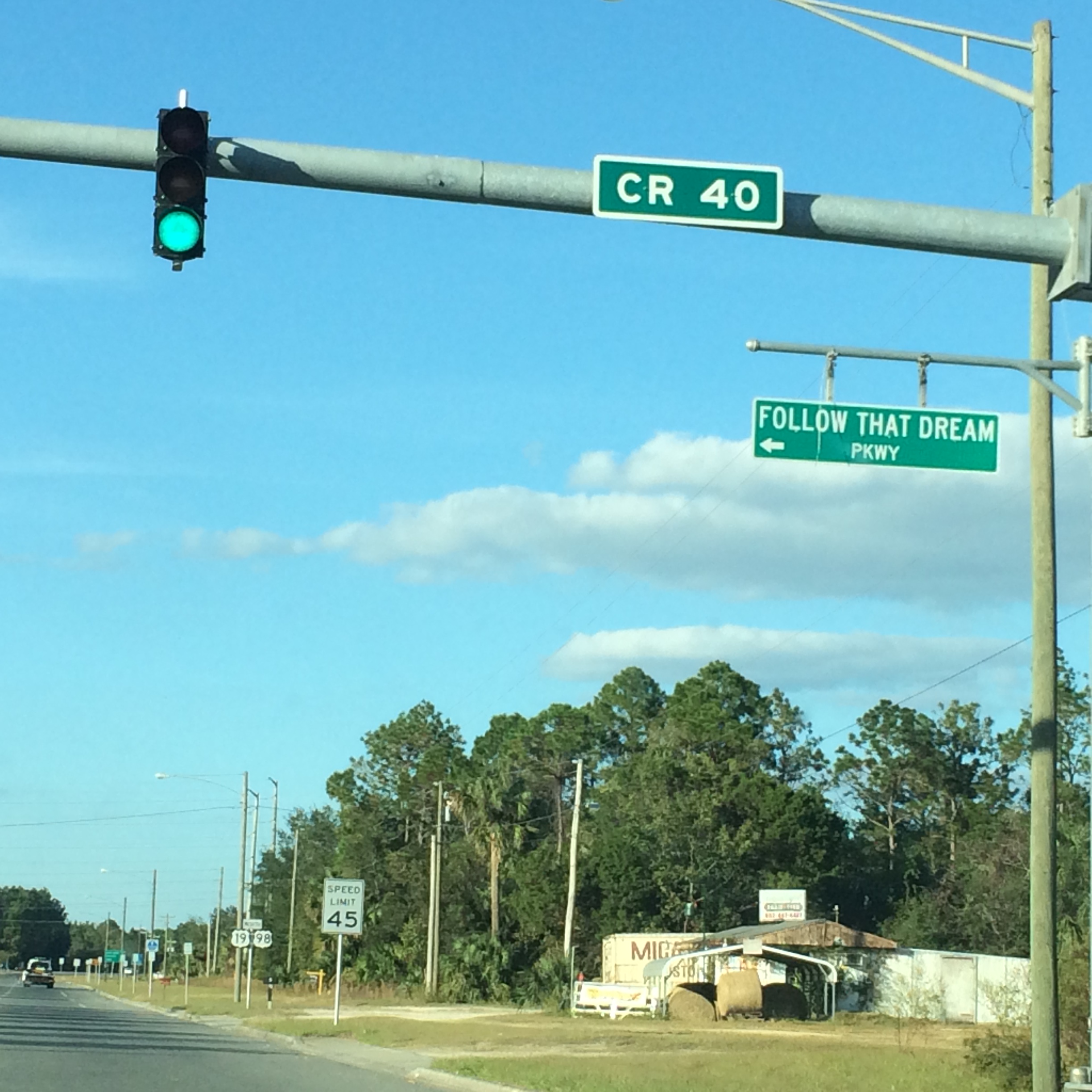 While listening to the teachings I was stopped at red light and noticed the I was at the cross roads of U.S. Route 98 and Follow That Dream Parkway. Yes. For real. The green and white street sign read, “Follow That Dream Pkwy.”
