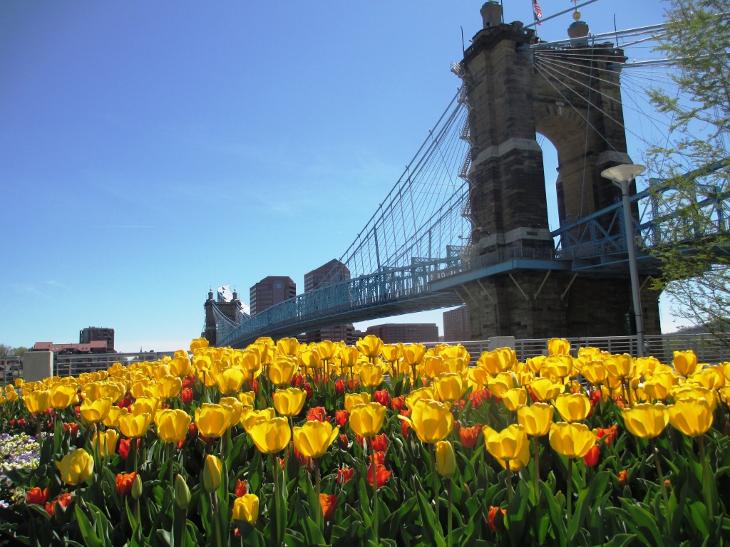 Weather was perfect for a longer walk so I ambled over the John A. Roebling Suspension Bridge into Kentucky and often looked down at the rushing Ohio River below. The 19th century baby-blue bridge reminded me of the Brooklyn Bridge in design and when it was first constructed, was the world’s longest suspension bridge.