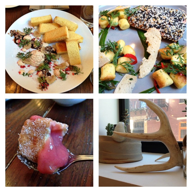 A cinnamon sugar donut filled with rhubarb custard topped off the heavenly meal. The creamy custard was pucker-tart and complemented sweet and crunchy donut. I also sampled the delicious goat cheese and cherry ice cream and chocolate almond milk ice cream which tasted like an Almond Joy Bar. The server said ingredients are sourced from within about a 100-mile radius and dishes are made at the restaurant, including the creamy ice creams.
