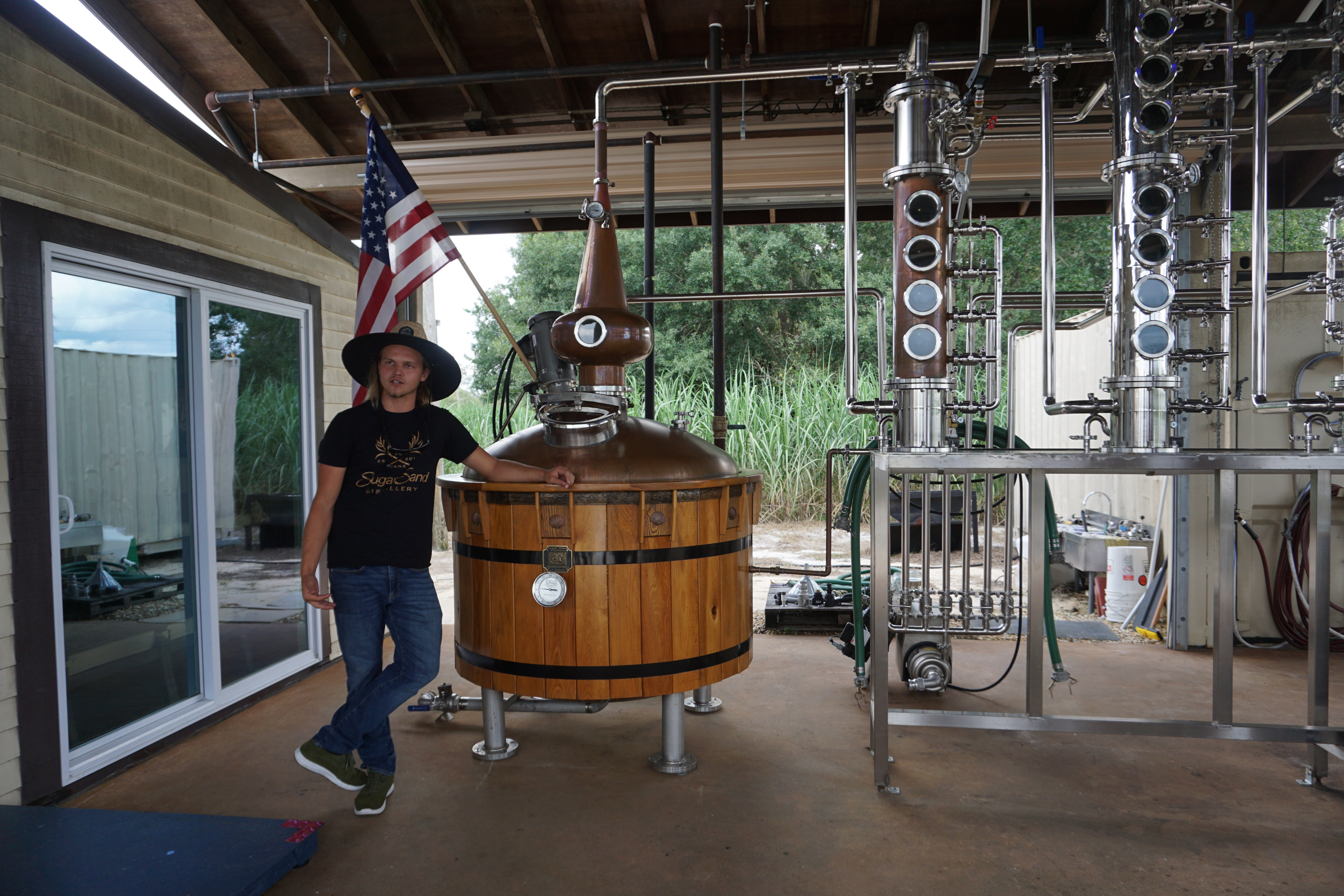 Although Sugar Sand Distillery opened to the public on April 7, 2018, it was a 53-week process leading up to the first pouring of spirits. The distillery is located on what was once an orange grove owned by the family and it fell to citrus greening disease. The couple have agricultural backgrounds and knew they wanted to keep the land agricultural. They decided on planting sugar cane and selling it as ornamental grass since it makes a practical hedge or to people who want to squeeze the sugar juice for personal use.