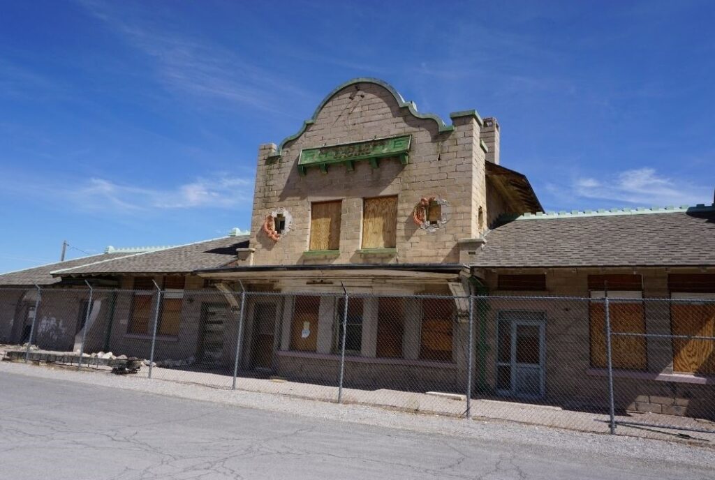 - Rhyolite Train Station Depot – serviced by the Las Vegas & Tonopah Railroad, this was one of three railroads that served Rhyolite. The others were the Bullfrog Goldfield Railroad and Tonopah Tidewater Railroad.