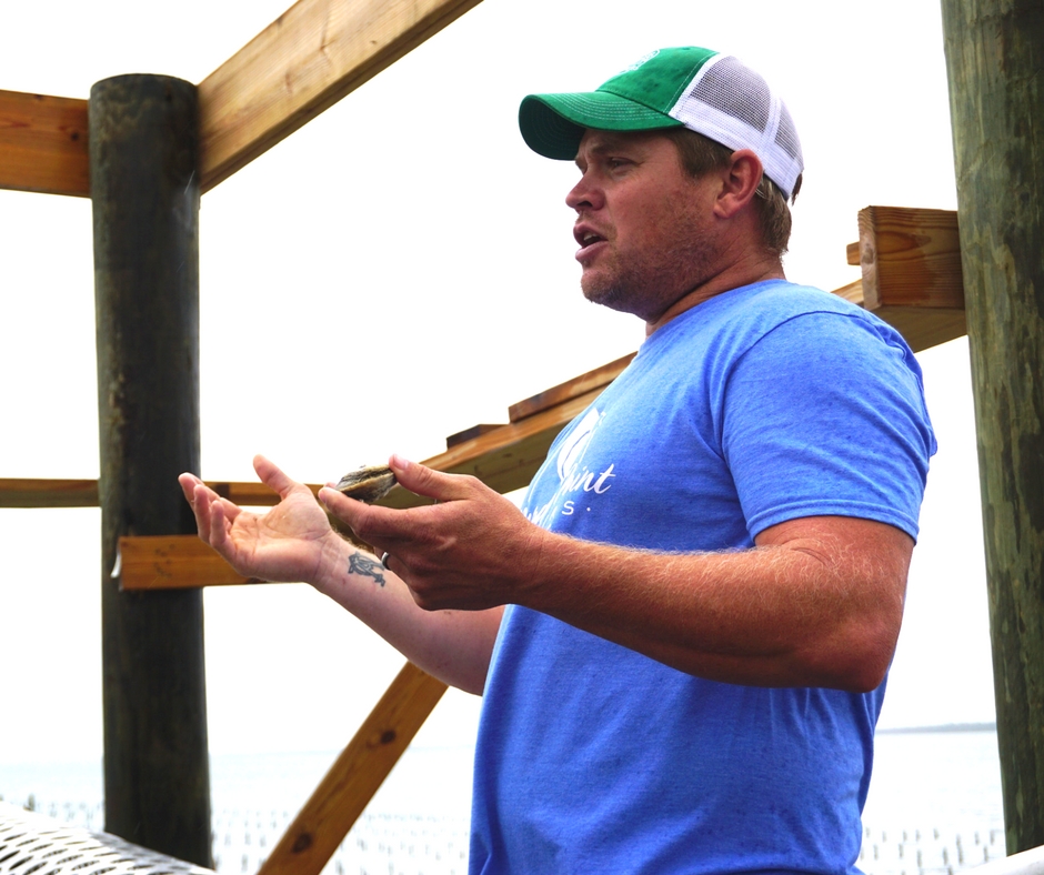 Who is this guy talking to oysters and why am I writing about oyster farming? I attended the 2016 World Food Championships Blogger Summit in Orange Beach, Ala., and learned about Alabama seafood and specifically, oyster farming in a world post-BP oil spill world. I also toured a working oyster farm! Modern farming techniques are so fascinating, it is so interesting to see how it has become industrialized and modernized by virtue of technology.