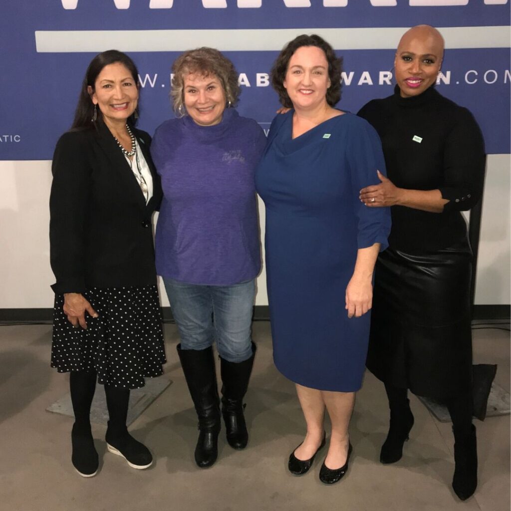 Sen. Elizabeth Warren attended impeachment hearings in Washington, D.C., so she was not at her rally. However, speakers included Reps. Ayanna Pressley (D-MA), Katie Porter (D-CA), and Deb Haaland (D-NM) who are her national campaign co-chairs. Bruce Mann, Warren’s husband, also spoke and he brought their handsome Golden Retriever, Bailey. Warren did arrive into town later that night, around 10:30 p.m. at Peace Tree Brewing and posed for photos with anyone who wanted one.