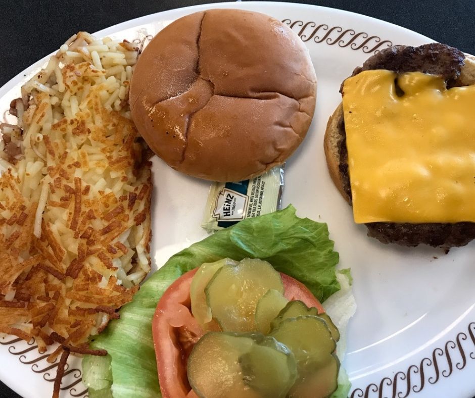 The Georgia heat and humidity whipped me. I did not want to drive to a restaurant for dinner so I walked to the nearby Waffle House. The cheeseburger hit the spot.