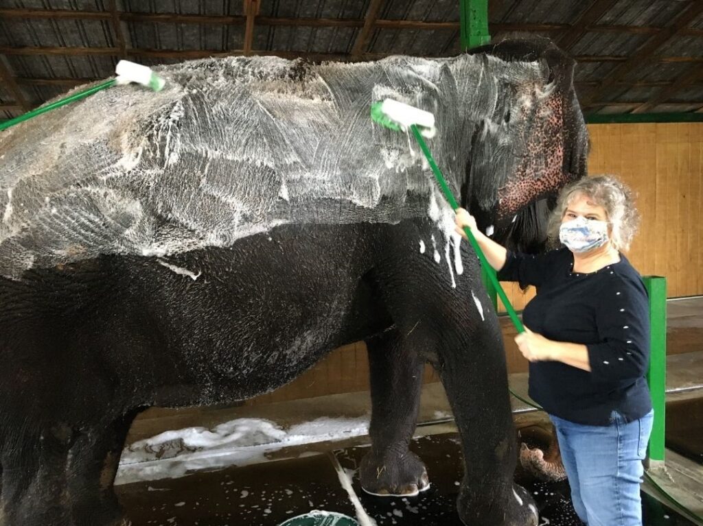 Everyone in attendance had an opportunity to participate in the experience and everyone had a chance to scrub at least one of the elephants.