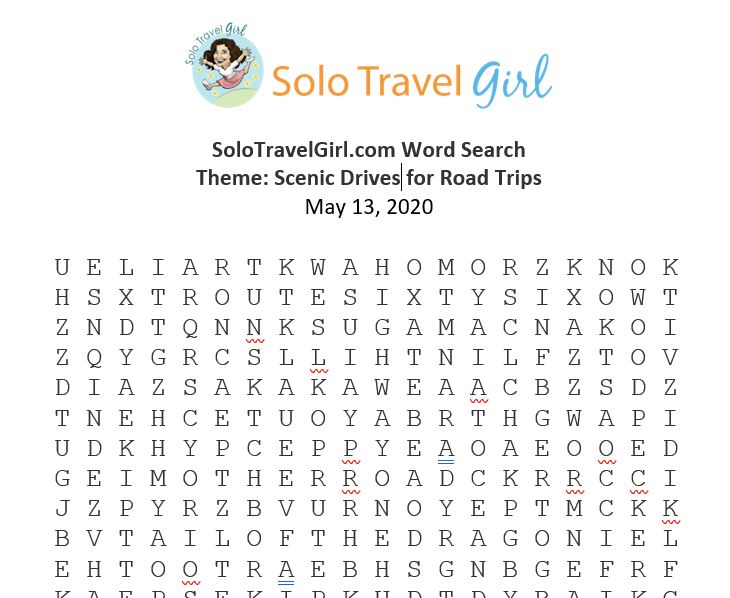 During these days of social distancing and quarantining, I am publishing a travel-related word search each week. I will do so every Wednesday until we find our new normal. Take your mind off COVID-19 news and download this free printable, travel-themed word search. This week’s theme: Scenic Drives for Road Trips!