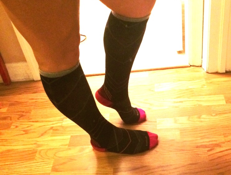 After an hour of researching and comparing prices, I selected Sockwell Women’s Incline Compression Socks with black being the dominate color and accented with bright pink toes and heels and stripes on the main body of the sock. The knee-high socks looked like those I used to wear when I (briefly) played roller derby.