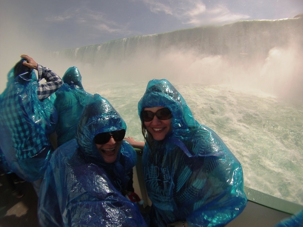 Bubbling with giddiness, I laughed and screamed because I realized how small I was compared to the 600,000-some gallons per second rushing over the Horseshoe Falls. (Since I’m discussing Canada, that’s 2,271,247 liters per second.). I also laughed at the irony. I’ve traveled around the world and this was the first time being smack dab in the middle of this natural awesomeness and magical treasure. I’m sorry it took so long to hop aboard the Maid of the Mist but glad I finally did it and happy to have shared the experience with my bestie.
