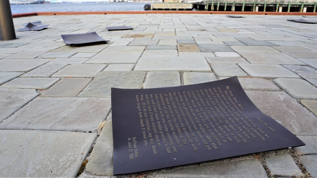 The trail meanders through downtown and along the Elizabeth River. The Armed Forces Memorial in Town Point Park is a 160-foot monument dedicated to veterans who served in wars and conflicts from the American Revolutionary War through today’s Operation Enduring Freedom in Afghanistan. It consists of 20 cast-bronze letters. Pages scatter across the memorial and beneath a flagpole. They look as if the wind blew them. Each page is an inscription written about the respective war to a loved one at home by a U.S. Armed Forces servicemember who perished. Completed in 1998, the original memorial included 20 letters from servicemembers in the Revolution through the Persian Gulf War.